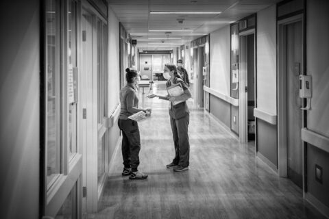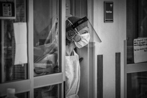 On April 15, the day of the ICU shoot, everyone I met and saw there displayed a consistent if solemn resolve. I could read worry in some eyes, and even a flicker of fear, but that was the exception. The high professionalism of the medical people was very moving to observe. But what has stayed with me longest is the memory of the ICU’s prevailing quiet, an almost overwhelming silence.