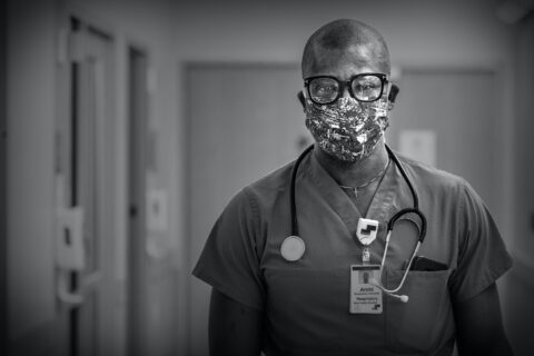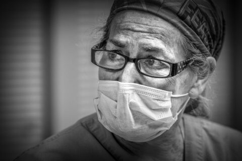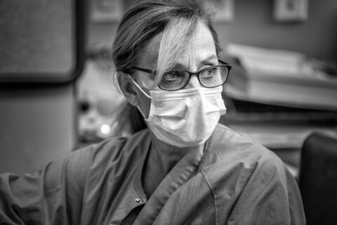 On April 10, 2020, I got a call from a business client and dear friend, Deborah Chiaravalloti, the director of marketing and community relations at Holy Family Hospital in Methuen, Massachusetts. Her idea was to photograph some of the doctors and nurses from the ICU who would stand in front of an exterior white stucco wall. The photos would be included in messaging to the community about the hospital’s readiness to manage the rising tide of Covid-19 cases.