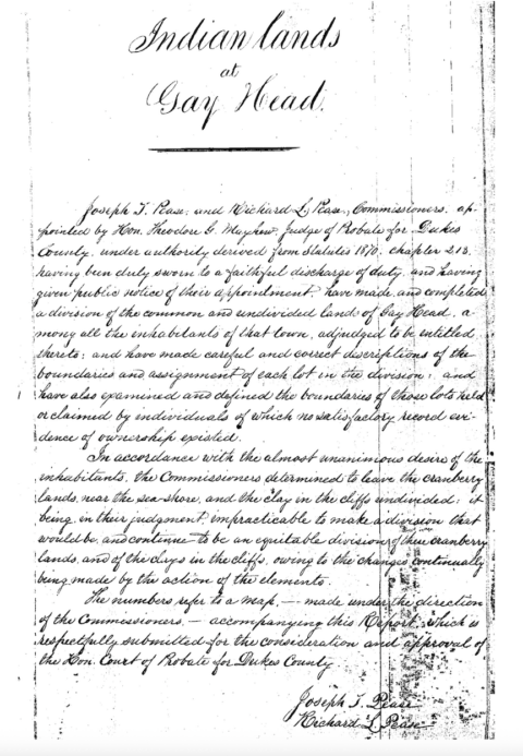I learned elsewhere that in 1842, the state of Massachusetts divided Wampanoag tribal land into 60-acre lots to force assimilation and encourage subsistence farming. Later, the lots were further divided – which facilitated tax and debt collection — and led to a broad sell-off of parcels to Whites. I live on such a lot in Aquinnah, formerly called Gay Head by the colonists. Silverman notes, “The blanket granting of citizenship to Indians would not take place until 1924, sometimes over the opposition of Native people who saw it as a breach of tribal sovereignty and an unwanted tax burden.”
