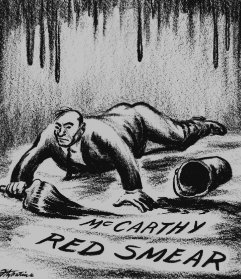 In the Shadow of Fear resonates now by way of its portrayal of the demise of centrism and the fracturing of the Democratic party, while Republicans realized that stoking alarm over the threat of internal enemies could win votes. Bunker writes, “It was the strangest of ironies that the most famous of the country’s anti-communist crusades would occur at just the moment when corporate America had the least to fear from such an enemy within.” So as U. S. Steel was erecting the largest plant it would ever operate, Joseph McCarthy took anti-Communism to its furthest extreme. As Bunker notes, McCarthy had not previously been a vocal critic of Truman’s policies, had supported the NATO treaty, and “was never much of an ideologue himself.” In 1936, he ran for district attorney as a New Deal Democrat. (Donald Trump was never much of an ideologue either. He liked to hang around New York lefties and attend Saturday Night Live after-parties.) But the Alger Hiss affair lit up headlines across the country, and McCarthy relentlessly attacked the State Department as a nest of spies and Communist sympathizers.