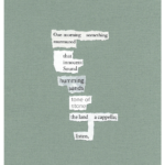 Artist, poet, and freelance writer, J.I. Kleinberg is a Best of the Net and Pushcart nominee. Her found poems have appeared in Diagram, Entropy, Heavy Feather Review, Otoliths, Rise Up Review, The Tishman Review, and elsewhere. She lives in Bellingham, Washington.