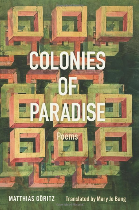 Colonies of Paradise, poems by Matthias Göritz, translated by Mary Jo Bang, was published in October 2022 by TriQuarterly Books, 104 pages, $18.00 paperback. You may acquire a copy at the press’ web page by clicking here.