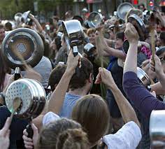 the streets again, the squatters tolled their pots and pans and heard