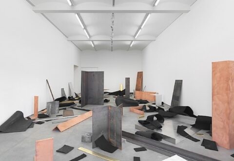 [left — Robert Morris, “Scatter Piece,” 1968] The plasticity of mind that obsesses Meadows originates in the plastic arts — conceptual, yes, but tied to material objects that have been thrown away or recycled and/or decomposed. Hence, the long poem “On the accidental disposal of artwork mistaken for litter,” which was inspired by an interview with artist Robert Morris about his late ‘60s installation “Untitled: A Scatter Piece.” Morris used ordinary materials in his less than ordinary work; he was quoted in his New York Times obituary as saying, “Plywood was cheap, plentiful, standard and ubiquitous” and “It was unstressed as an art material, an ‘ordinary’ material in the industrial world. The tools required to work plywood were common and readily at hand; the skill required to manipulate them was relatively undemanding; carpentry was another ‘ordinary’ everyday skill in the urban late industrial milieu.” And, as Meadows notes in her Morris poem, “Everyone [is] a collector.” The man on the dump was as much a connoisseur as any gallery owner. She observes: