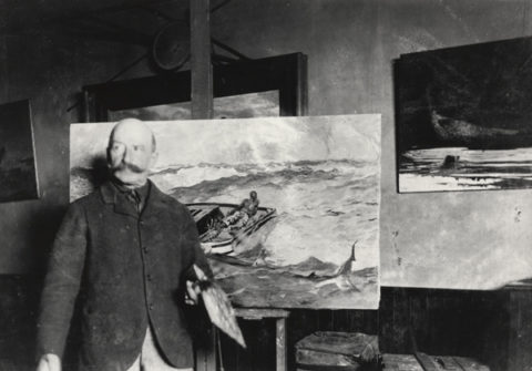 Below: Winslow Homer with his painting “The Gulf Stream,” circa 1900